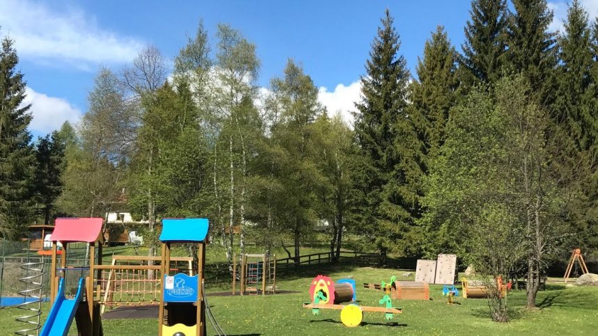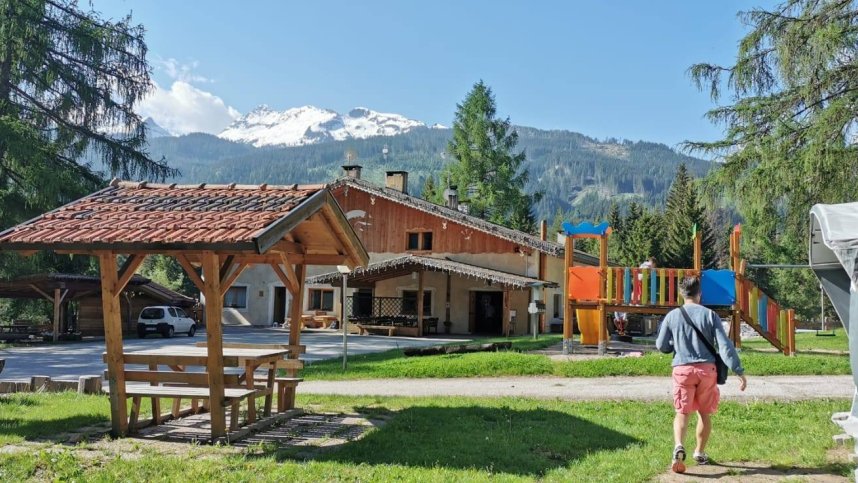 Sanitary block fairly outdated but sufficient, Accessible facilities, Laundry facilities, Washing up facilities, Restaurant, Bar, Pizzeria, Take away food, Fresh bread delivery service, Outdoor swimming pool, Children's playground, Football pitch, volleyball, Tennis, Bicycle hire, entertainment in July and August, Kids Club, Games room, Table tennis, Skiing nearby, Ski hire, Drying area, Shuttle from campsite to ski slopes, Guided walks, Wellness area, Excursion programme, On-site dog walking area, WIFI.