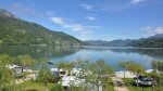 Celebrating its fiftieth anniversary in 2012, this family run campsite is attractively located on one of the smaller and most easterly of the Italian lakes. The 92 touring pitches are moderately sized (65 sq.m), with those on the lakeside costing a little more, and 3A electricity included. There are four modern, well equipped mobile homes and 11 old and very basic bungalows for hire. The private 300 m. beach, made up partly of pebbles and partly of fine gravel, slopes gently at one end and falls away sharply at the other. Children’s activities are organised daily (except Sundays) in high season.
