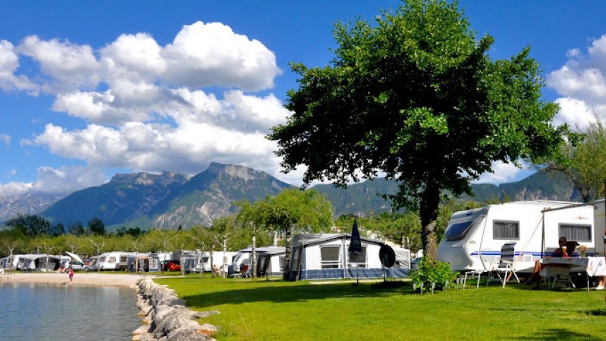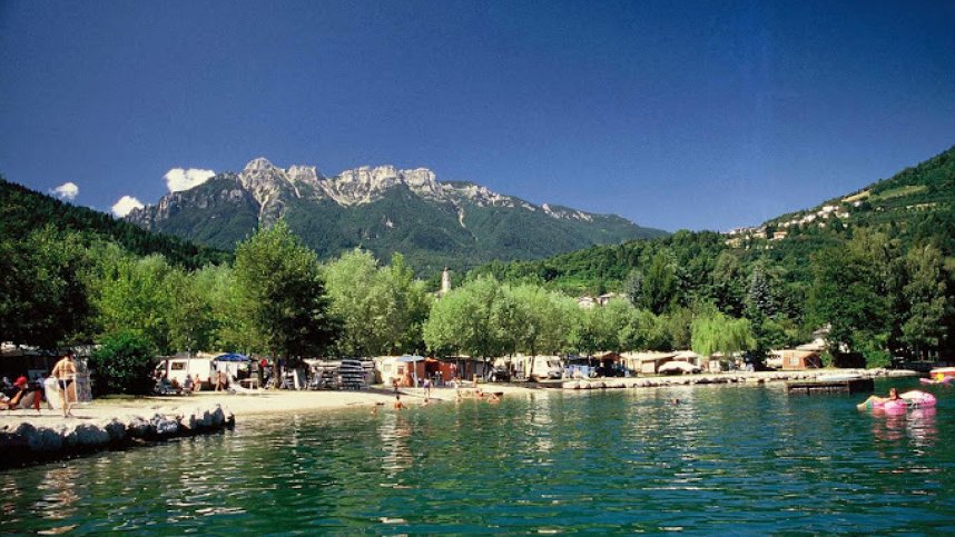Calceranica-al-Lago is 19 km. southeast of Trento. From A22 Verona-Brenner motorway, leave at Trento-Nord, follow signs for SS47 Valsugana and Padova. Pass Pergine and after 3 km. follow signs for San Cristoforo, drive along the lake to Calceranica. At second roundabout turn left onto Viale Trento. Site is just after railway bridge (height limit 3.25 m).
