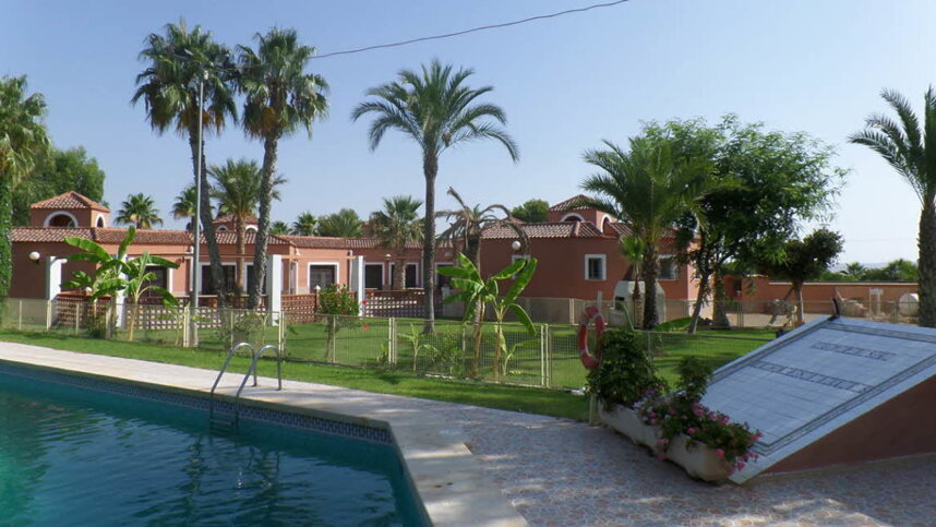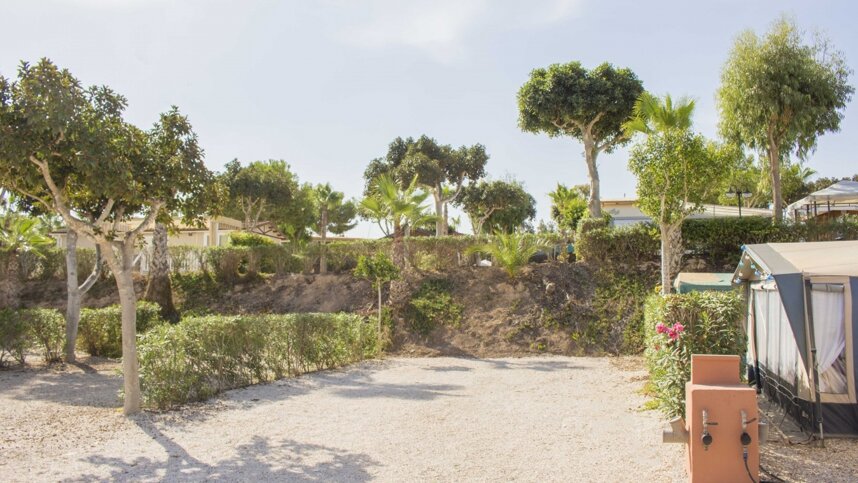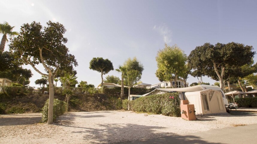 Florantilles is an excellent site situated 6 km. west of Torrevieja, 60 km. south of Alicante and occupying an elevated position overlooking orange groves and the famous salt lake nature reserve, Salinas de la Mata. The site is terraced and well lit, with good sized gravel pitches and tarmac roads. All 262 pitches are separated by hedges and have 10A electricity (metered for long stays), water and waste water drainage. A third of the pitches are for touring, while the others are occupied by privately owned mobile homes or are seasonal pitches, mainly used by retired British owners who spend the winter months here.