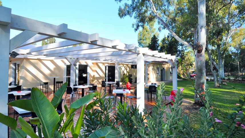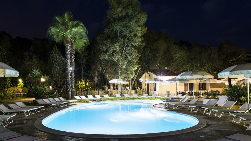 Camping Flumendosa is a 2.5 hectare site set in a leafy pine forest, just across the road from the sandy beach and shallow clear waters of the lively town of Santa Margherita di Pula, on the southern coast of Sardinia. The 100 pitches of 70 sq. m. have 8A Europlug electrical connections and water points around. With a focus on fun, relaxation and nature, this site is ideally located for a range of activities including, mountain-biking, horse riding, hiking and diving. A day could be spent at the nearby Blue-Fan Water Park or at the Pula Aerial Adventure Park. For the more archaeologically minded, a visit to the ruins of Nora, one of the most important archaeological sites on Sardinia is a must.