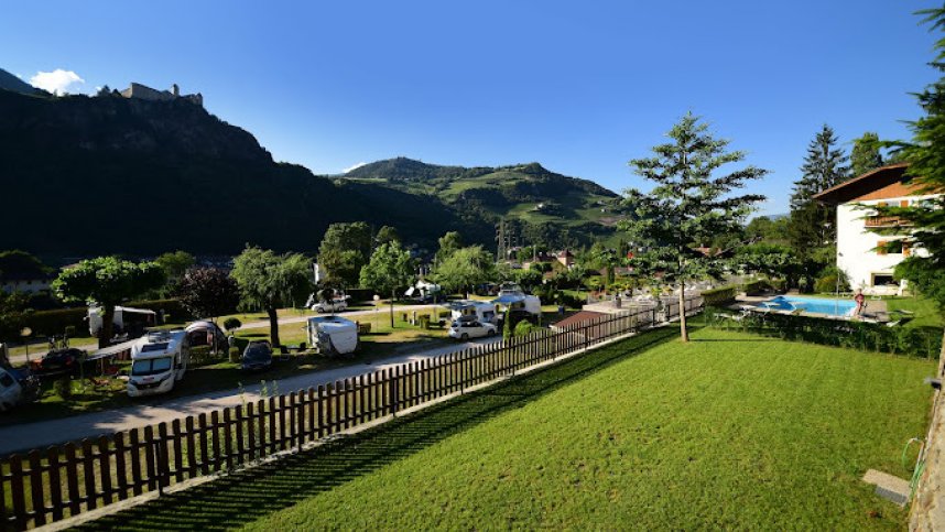 Camping Gamp is a family run site situated in the picturesque Isarco valley in the mountainous, Südtirol region of northern Italy. It is well sited for a stopover near the Brenner-Modena A22 motorway, so traffic noise is to be expected. It is also an ideal base from which to explore the mountains, villages and valleys of this attractive region. There are 80 pitches with full services including TV and Internet connections (electricity is 6/10A). The site is landscaped with some shade from trees. Above the pitches is an associated Gasthof with a pleasant bar and terrace where campers can enjoy a drink and a snack or a restaurant meal.
