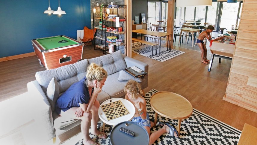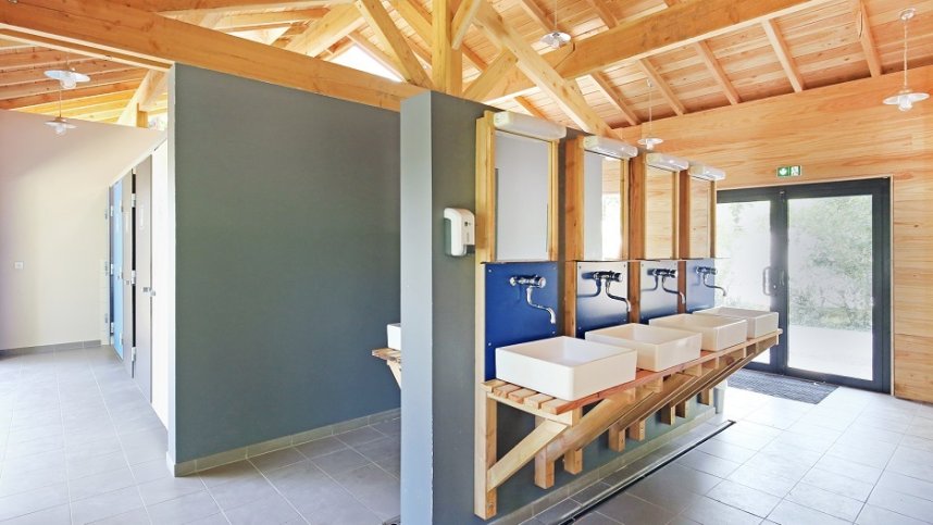 The campsite has a wide range of amenities including shower blocks with washing machines and dryers in every block. A bathroom for people with limited mobility is also available. The bar-restaurant and grocery shop with bakery department is open every day (during high season.) A modest library area allows campers to borrow books in French, Dutch and English. Kids Club ( ages 5-12) in high season. Ping-pong tables, tennis court, football pitch, petanque, and a children's playground. free WiFi access, TV room.