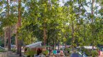 Reception is large and efficient, with English spoken. Facilities include two very good outdoor heated swimming pools, both 25x15 m. one deep, one shallow, and a small children’s pool (open about 7/5-7/9). Grass sunbathing areas extend down to the sandy surrounds of a lake used for boating and swimming. These are free to campers except for an initial fee for an identity pass. This is a dog-friendly site with walking opportunities in the adjacent national park.