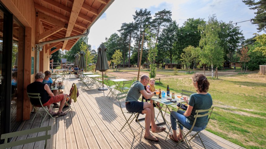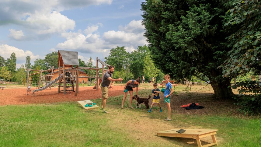 Situated in the Meinweg National Park, this large site with facilities on a holiday camp scale caters well for families with children of all ages. Of the 800 grassed pitches (averaging 90 sq.m) 400 are for touring units. They are level, separated into enclosures of various sizes by hedges and most have 10A electricity. There is ample tree shade over the site, grassed places to sunbathe and a wealth of activities to keep children busy. Beside reception, the main building houses a restaurant/bar with terrace on the first floor, a supermarket and other eating and drinking establishments.