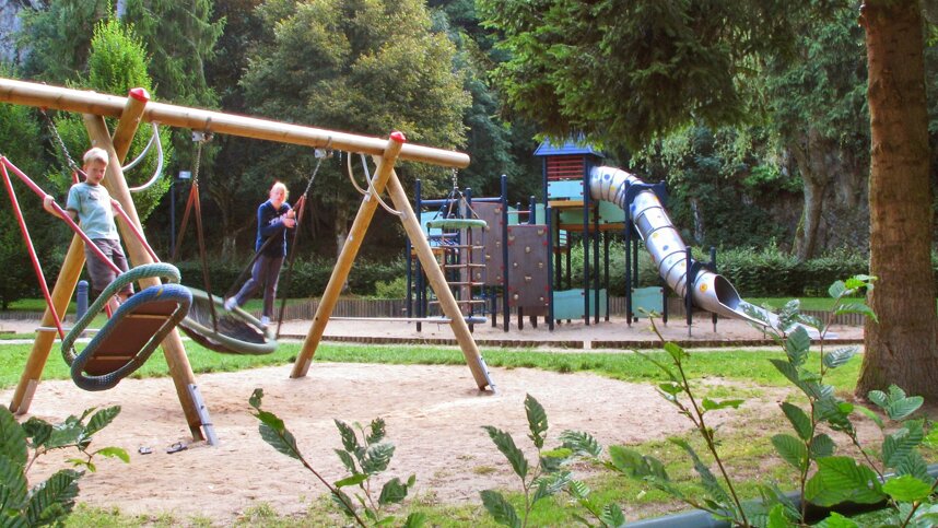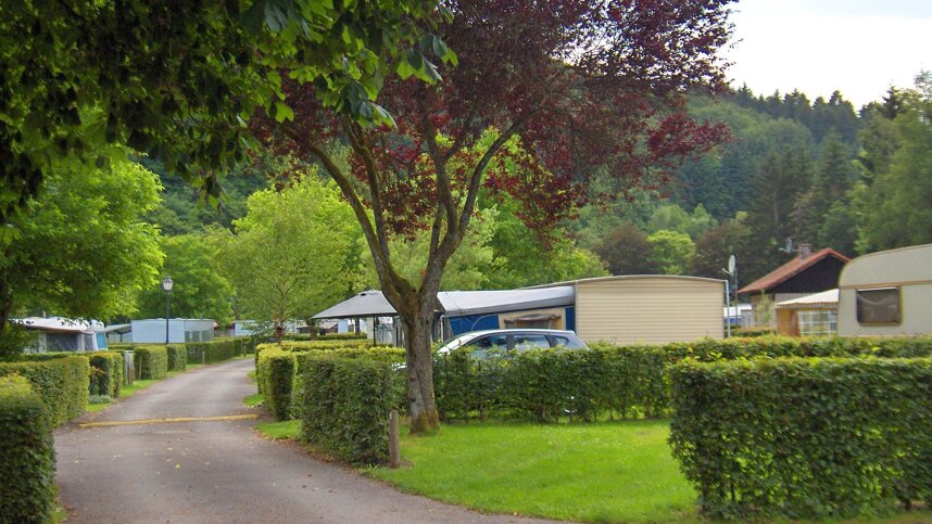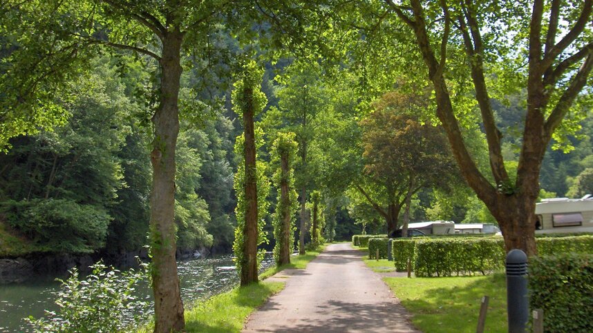 Lying some 50 km north of Luxembourg, this community-owned site is situated alongside the River Sûre, only a 500-metre stroll from the pretty village of Esch-sur-Sure. It is located in a nature reserve with a man-made lake that runs along the valley and is overlooked by the wooded hills. It's a peaceful spot, even in high summer, when visitors come to enjoy this green oasis.