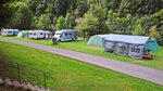 The area near the bar/restaurant contains mainly seasonal pitches, while a large touring area is across a road bridge within the site, on the opposite side of the river. This contains 150 good-sized level grass pitches with 10A electricity. Adjacent to the site are comprehensive children’s play facilities, also belonging to the community. The enthusiastic manager organises a full activity programme for all the family in high season; at other times, it will suit those seeking a quiet retreat in a beautiful location.