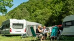 The toilet block of very high quality is fully equipped and has some washbasins in cabins and controllable hot showers (charged). Accessible facilities. Chemical toilet point. Baby room. Kitchen. Laundry with washing machine and dryer. Heated outdoor swimming pool (May-Sept). Takeaway. Wi-Fi throughout (free). Lounge to chill, read and play. Breakfast from 8 - 11 o'clock. Bar. Restaurant. Snack bar. Children's playground. Table tennis. Dogs allowed. Security barrier. Shop 1km.