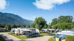 In a convenient location with distant mountain views across the valley, this site has a restaurant and an open-air swimming pool, and would be a suitable base for a short stay, although there is some noise from the nearby autobahn. There are 160 small, sparse grass-over-gravel, terraced pitches. Around 80 are used by seasonal units, leaving 80 pitches for tourers, all with 13A electricity hook-ups. There is very little shade and all the facilities are at the top of the site around reception. The restaurant and pizzeria has an attractive covered terrace, and reception has a small shop for basics.