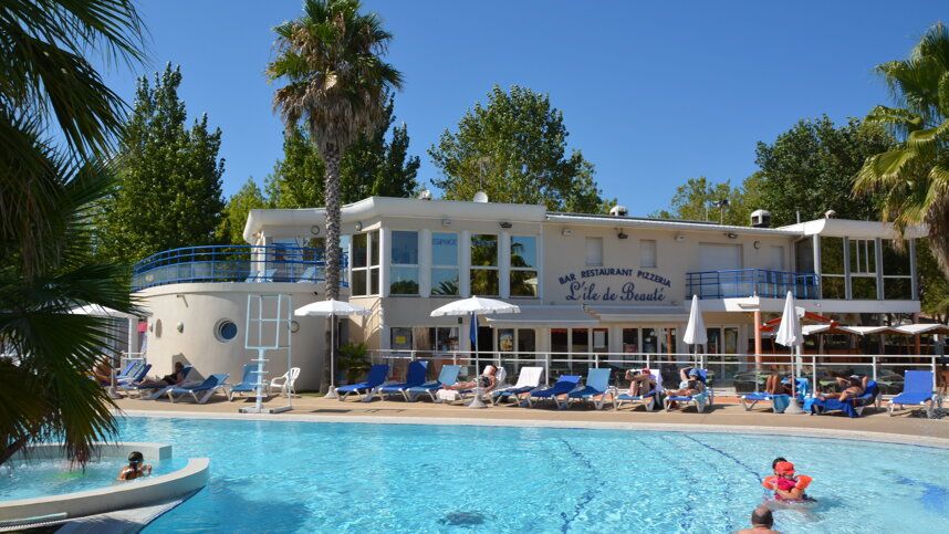 Fully equipped sanitary blocks are of a reasonable standard. Baby bath. Accessible facilities. Laundry. Motorhome services. Fridge hire. Supermarket and bakery. Bar. Restaurant/pizzeria. Swimming pool complex with lively piped music (heated in early and late season) includes a jacuzzi, Hammam and solarium. Gym/fitness room with new equipment. Bicycle hire. Tennis, archery, boules. TV. Rooms for young campers. Miniclub. Teenage club. Amphitheatre, wide range of free entertainment until midnight (high season). Disco at site entrance (Easter-Sept). WiFi over site (charged).