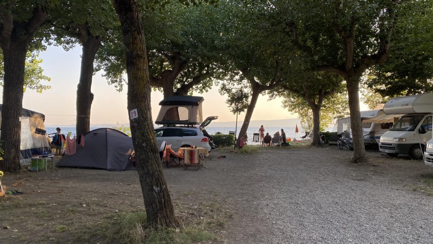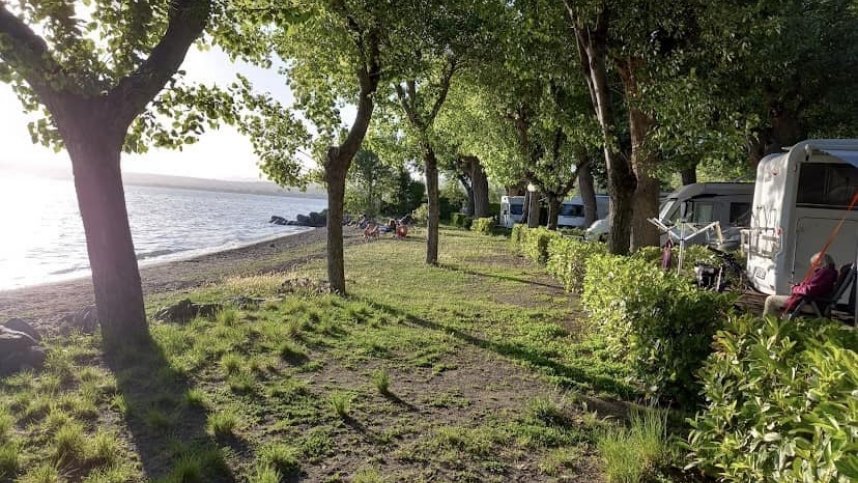 Site is beside Lake Bolsena in the southeast area of the town of Bolsena. In town, follow lake and camping signs and site is easy to locate.