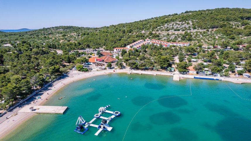 Some have sea views and fronting the site is a pebble beach with a concrete sunbathing area. The more active can take diving lessons at the site’s own diving centre, enjoy day trips around the Murter peninsula, the Plitvice and Kornati National Parks, or visit the bustling seaside resort of Zadar and the historic towns of Nin, Sibernik and Jezera.