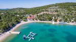 Camping Jezera Lovišća Murter is a family site of 75 acres with 400 informal pitches and would be a good choice for a relaxing beach holiday on the island of Murter. In high season, the site provides a full entertainment programme for children with games, music, drawing and swimming. For adults there are live musical nights at the bar/restaurant which has a large, welcoming terrace from where there are beautiful views of the lagoon. There are 360 grass and gravel pitches for touring units, all with 10A electricity (long leads may be necessary). They are mostly on level terraces, attractively built with low rock walls in the shade of mature trees.