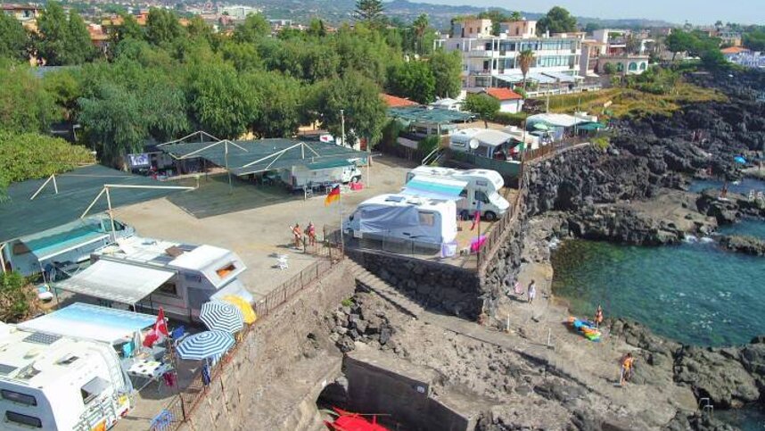 From A18 Catania exit follow signs to the coast road (SS114) towards Ognina. Site is off the SS114 (signed) on the northeast outskirts of town. Access to site is off the small one way system and via the site’s separate car park.