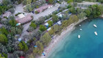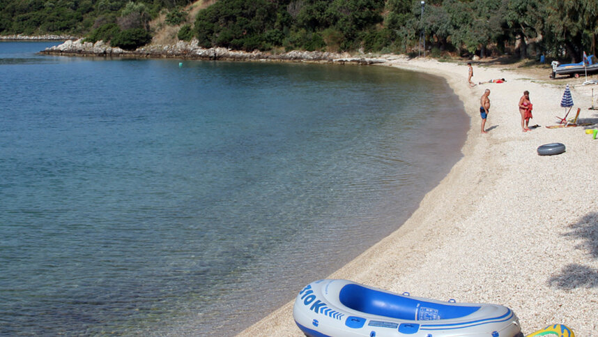 Set in a bay, this colourful, attractive, family run site leads down to a beach and the crystal clear waters of the Ionian Sea. Colour comes mainly from the beautiful bougainvillaea plants that clad many of the buildings, and ample shade for the 67 level, terraced pitches, all with 4A electricity, is provided by olive and eucalyptus trees. From the lower pitches there are panoramic views of the island of Corfu from which, at night, lights reflect across the open water. The construction of the site with natural stone paving and a generous display of plants is entirely in keeping with its well-chosen setting. A flight of steps and a small slipway lead down to the beach and the sea, which is perfect for swimming. The site owners can arrange water-skiing with a local company for those interested in more active watersports.