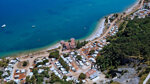 A safe area is roped off for swimmers. The site occupies a five hectare strip of coast winding between the imposing 120 m. rock face of an ancient quarry and the clear sea. It is directly across the bay from the town of Portoroz (Port of Roses) which is Slovenia’s major seaside resort and is a pleasant backdrop from Kanegra. This is a pleasant naturist site with a calming family atmosphere and pleasant places to eat. The restaurant and buffet bar enjoy fine sea views and there is an activity programme for all age groups. Unusually for naturist sites, there is no objection to single men. Its proximity to Slovenia (Portoroz 13 km. around the bay) makes it a possible base for visiting some of this country’s delights as well as those of Croatia.