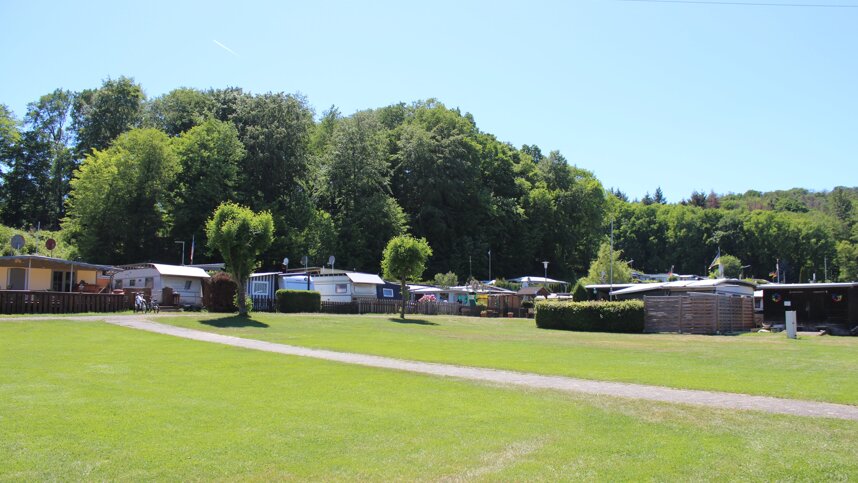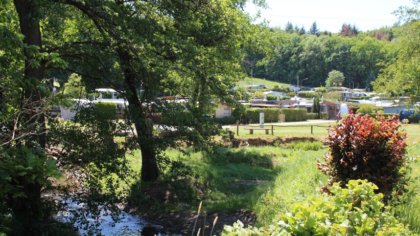 The site has 150 seasonal pitches and 60 grass pitches for touring units situated on neatly mown grass and with 16 amp hook-up. Most are open and sunny with modest shade to some, especially on the perimeter. The unspoilt nature all around creates a natural playground for youngsters with a stream to explore, trees to climb and space for them to run free.