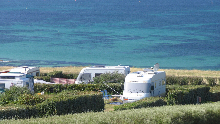 Camping Kersiny-Plage is a small, quiet campsite close to the Pointe du Raz, at the western tip of Brittany. It has 80 grassy pitches on terraces and separated by thick hedges; 8A electricity connections are available. The modern reception building has a pleasant terrace next to a children’s play area. There is direct access to the sandy beach with rocky outcrops ideal for fishing. The owners’ aim is to provide a peaceful base for a relaxing holiday, so there are no leisure facilities or organised activities, and groups are not accepted. There is a maximum of two adults and three children per pitch.