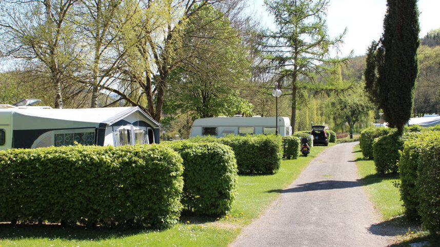 Situated on a hillside with views over the Mersch valley this is an attractive site for stopovers or more extended stays. It is close to the town of Mersch with good facilities and transport links, but the site has a pleasant rural ambience. There are 177 pitches, 136 for touring, including 12 hardstandings. All are level, grassy and of a good size, with 10A electricity, moderately shaded and separated by neatly maintained hedges.