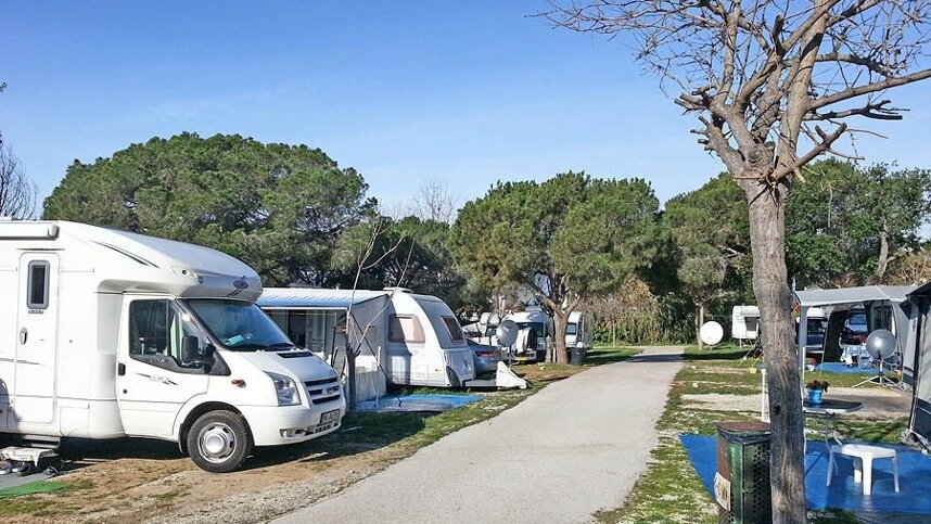 Three sanitary blocks of varying ages are clean and adequate. Accessible facilities, Laundry facilities (not all sinks have hot water). Motorhome services. Bar/restaurant with basic food. Well stocked small supermarket. Outdoor pool (all year). Play area. Tennis (high season). WiFi (charged). Dogs are not accepted in July/Aug.