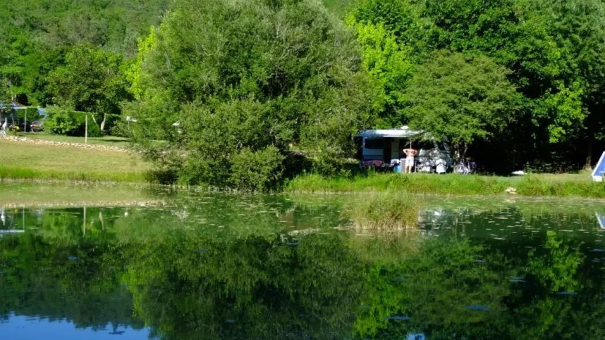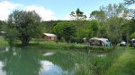 Camping Castillonderie is a spacious family run site, ideal for couples and families with young children. It lies in the Vézère valley in the heart of the Périgord Noir. The campsite nestles amongst the trees, hills and valleys offering a quiet rural retreat only 7 km. from Montignac-Lascaux and 17 km. from Sarlat. There are 63 reasonably level, grassy pitches of varying sizes, all with 6/10A Europlug, some in open sunny meadows. Fruit trees, bird nesting boxes and a fishing lake set the tone for this site, which is very popular in peak season when booking is recommended.