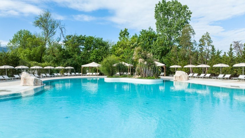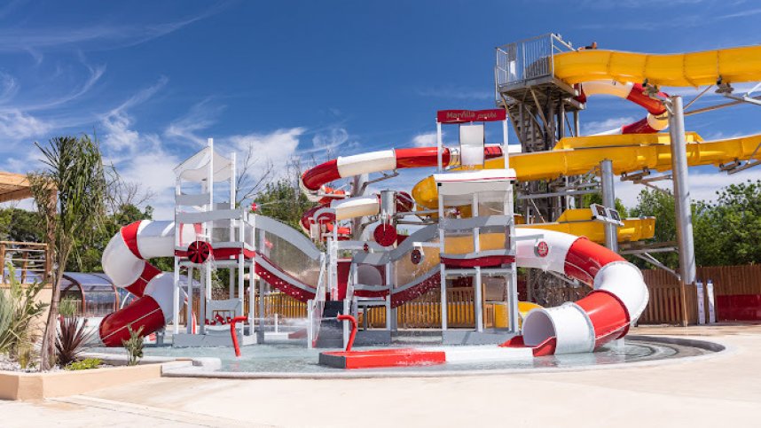 Five toilet blocks with modern facilities. Facilities for children/babies and accessible facilities (key). Laundry. Bread shop. Snacks. Bar (evenings). Swimming pool complex with bar. Play areas. Tennis. Multisports court. Minigolf. Gym. Children’s club run by tour operator. Gas or electric barbecues permitted. Mobile homes to rent. WiFi (charged).