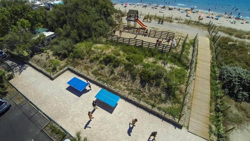 From A9 exit 34 take N312 towards Agde, then N112 towards Sète keeping a look-out for signs to Marseillan-Plage off this road. Site is well signed in Marseillan-Plage.