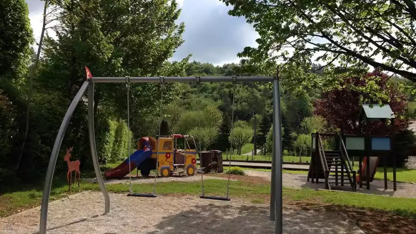Camping la Faz is situated in the Jura region close to the village of Orgelet. The site has a stream running along one of its boundaries and is mainly shaded. There is a small pleasant outdoor swimming pool by reception. The area of Jura provides good walking, hiking and watersports opportunities. There are several waterfalls and caves, Grottes de Moidons at Molain is especially worth a visit. The site is conveniently situated for a trip into Switzerland.