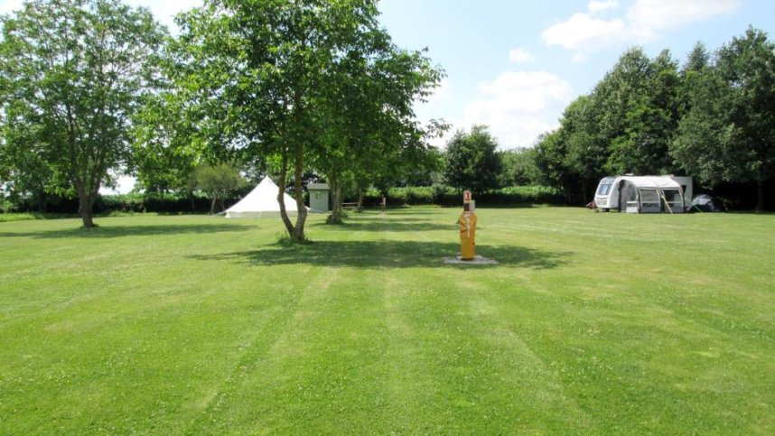 Camping & Gîtes La Forêt De Tessé is a small, family-run campsite located in the heart of the French countryside. They are situated in the Charente department of Nouvelle Aquitaine (was Poitou Charente) in the South West of France. The area is the second sunniest after the South of France. The campsite is set in 2 acres of woodland and offers a peaceful and relaxing setting for your holiday. The campsite is open all year round and is ideally located for exploring the surrounding area. There are many walks and cycle paths in the nearby forest, and the historic town of Parthenay is just a short drive away. There are 10 spacious touring pitches, all with electric hook-up points, and are spread out on an open field. There are also two fully-equipped tipis for hire, each with its own kitchen cabin.