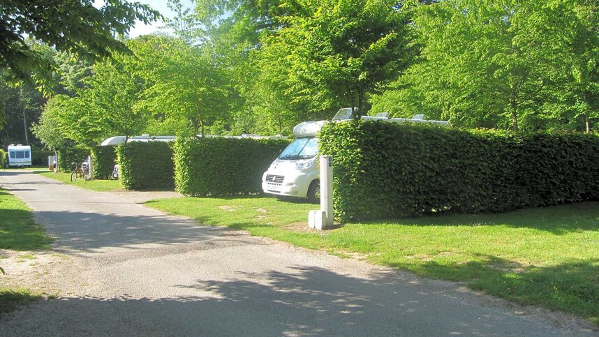 From A29 (Amiens/Le Havre), exit 8 (Yvetot) and head south for Pont de Brotonne (D910/D33/D31/D490). Before bridge, take third exit at roundabout on D37A (Rouen) to roundabout below bridge. Turn southeast on D982, through Le Trait and in 11 km. turn south to Jumièges. Site clearly signed to left on entering village. From A13 (Rouen/Caen) at exit 25 take D313 north to Pont de Brotonne. Immediately after crossing bridge take first exit at roundabout on D37A (Rouen/le Trait) then as above. Please note: Jumièges is signed from D313 but this route uses a ferry that does not take caravans or motorhomes.