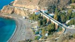 One of the earliest sites in Spain (dating back to 1957), la Garrofa nestles in a cove with a virtually private beach accessed only by sea or through the campsite. It is rather dramatic with the tall mountain cliffs behind. Many of the rather small 100 flat and sloping sandy pitches are shaded, with some very close to the beach and sea. Eighty have 6/10A electricity. An old fortress looks down on the campsite – you can walk to it via a valley at the back of the site and across an old Roman bridge. Other walks directly from the site include a Roman road providing fine coastal views.