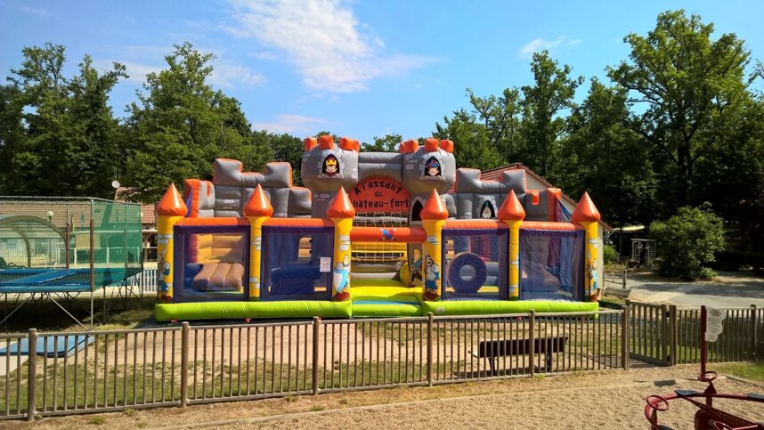 Three sanitary blocks offer washbasins in cabins and pushbutton showers. Accessible Facilities in one block. Laundry facilities. Motorhome services. Shop, terraced bar and restaurant with takeaway service (all season). Heated swimming pool covered in poor weather, shallow outdoor pools for children (from 1/5). Trampolines, ball crawl with slide and climbing wall, two bouncy inflatables. Club for children (July/Aug). Multisports court. Bicycle hire (13/4-15/9). WiFi over site (charged). No electric barbecues