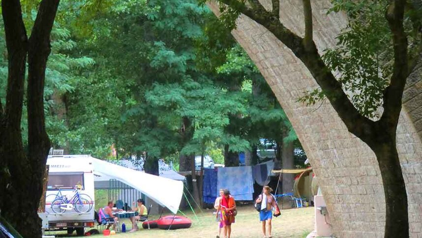 From the A75 take exit 44.1 towards Aguessac. In Aguessac take D907 towards Florac. The campsite is 100 m. after the Rozier bridge.