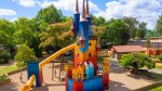 This site is set in a gorgeous, rural part of France amongst the beauty of the Périgord countryside with its rolling green hills and ancient buildings. The restored and preserved buildings at la Palombière add to the pleasure of this delightful site. It is evident that much investment has gone into making this holiday destination a place to remember. There are 200 pitches of which 68 are for touring caravans and tents. All have 10A electricity and some are fully serviced. Most are level and shaded from the sun, with some terracing because of the different levels. The remaining pitches are used for chalets and mobile homes, of which 61 are for hire.