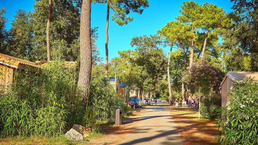 Camping la Pinède is a lively site located on a long stretch of land in a shady pine forest, slightly off the bustling coast. It is a few kilometres from the beach between the villages of Les Mathes and La Palmyre. The 11-hectare site provides a total of 501 pitches, of which 145 are available for touring units, all with 10A electricity and 64 also with water and drainage. They are level and a mixture of sand and grass, many hedged by bushes. Tall pines provide shade in places. An impressive heated indoor pool complex includes five large water slides, a lazy river, a waterfall, paddling pool and jacuzzi.