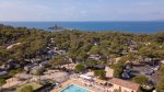 The site has its private pebble beach with a beautiful view across the bay; on the beach, you will find a restaurant serving good coffee, alcoholic drinks and excellent French cuisine (booking is essential in the evening). This site is popular with scuba divers, and there is a Diving School on site that operates from the beach, which is an ideal base for exploring the turquoise waters.