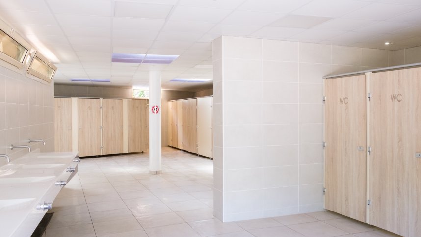 There are two modern toilet blocks on site that were cleaned constantly throughout the day, both these have private washing cubicles, there is also a modern laundry room and a dog wash. Very good facilities for babies in a separate heated unit. Accessible Wet room. Shop, bar, snack bar. Heated swimming pool. Takeaway. Playground. Diving school. Boat launching (charged). Multisport pitch. Fully equipped gym. Activity and entertainment programme. Direct beach access. Charcoal barbecues not permitted. Mobile homes and chalets for rent. WiFi throughout (charged).
