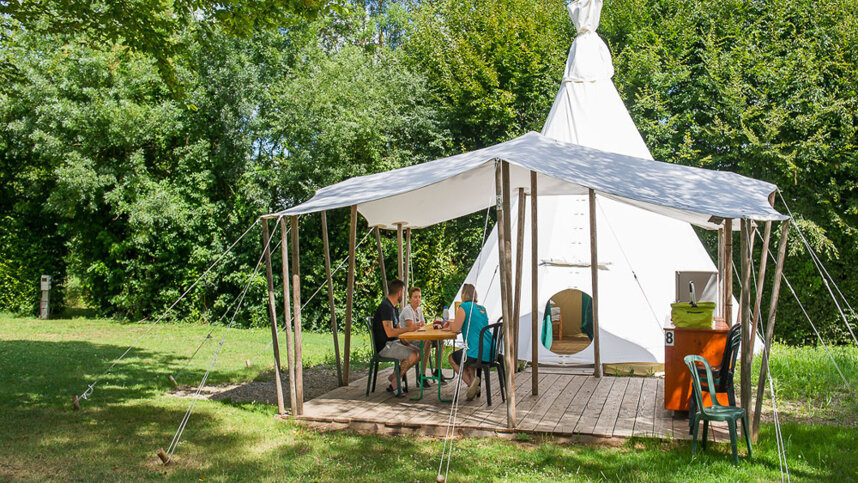 This excellent site, ideal for active families, belongs to a syndicate of several local villages. It is a very well maintained, large site with 560 marked and numbered pitches, 400 with 10A electricity, 96 accommodation and 70 seasonal pitches. The majority are of a good size, hedged and on flat grass, with shade in most parts. The site is spacious and broken up into sections by trees and hedges. One area has been allocated for eight teepees to rent, with cooking facilities. It is on the edge of an attractive 95 hectare lake with an adjacent public beach.