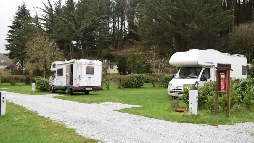 A pathway, just opposite the site entrance, gives direct access to the river Aulne where fishing is popular (permit required), and a twice hourly train service provides easy access into the cathedral city of Quimper.