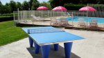 The two toilet blocks have showers, wash basins and wc’s. Family shower. Accessible facilities. Chemical toilet point. Dish washing area. Laundry. Small shop. Snack bar. Pizzeria. Bar. Communal barbecue area. Freezer for ice packs. Outdoor swimming pool and toddler pool. Children’s play area.  Entertianment, Animal meadow. Trampoline. Table tennis. Boules court. TV room. Archery. Public transport and shop nearby. Dogs allowed. Wi-Fi zone free. Bike hire.
