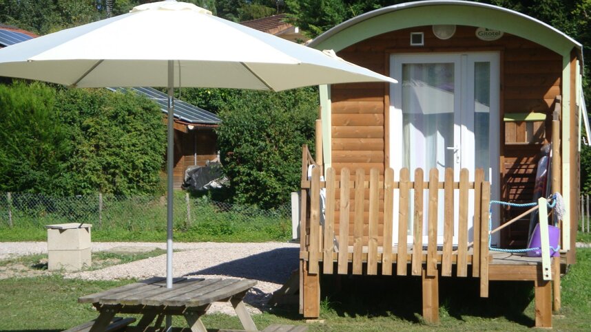 Campsite La Pourvoirie des Ellandes is located on the shores of Lake Geneva, in the town of Excenevex, in Haute-Savoie. This one hectare site with 34 rental pitches is located less than a 10 minute walk from the lakes Plage d'Excenevex, the only natural sandy beach in the Haute-Savoie department’s UNESCO-registered Chablais Geopark.