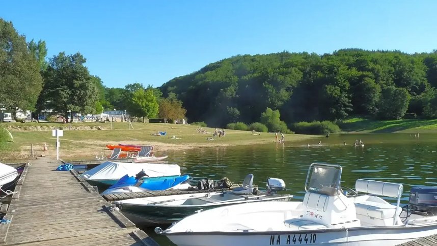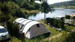 A small, rural, well maintained, family run site, La Rominguiere is located beside a man-made lake high up in the Massif Central. It is an ideal site to use as a base for touring the area which has some amazing scenery. There are 62 slightly sloping, good sized pitches, 30 for touring units. Many are separated by hedges and shaded by mature trees, and all have electricity (10A), water and drainage. There is a small stony beach for bathing in the lake and there are many marked walking and cycling routes around it. Access to the site is by fairly steep, twisting, narrow lanes and is not suitable for large underpowered units.