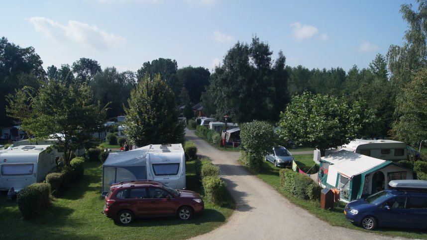 This is a charming, well-run site with an attractively floral entrance, plenty of bushes, and small trees separating the pitches. The 98 numbered touring pitches all have electricity (10A) and are on level grass off hard access roads. They vary in size up to 130 sq.m. and 55 have water and drainage.