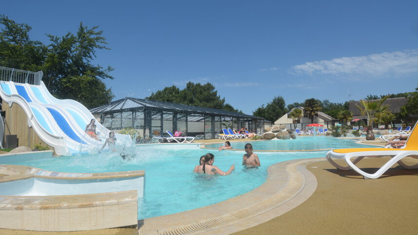 The central toilet block is well maintained, heated in low season with all modern facilities. Part of it may not be open outside July/Aug. Baby bath. Accessible Toilet and shower. Laundry facilities. Motorhome services. Shop for basics, pleasant bar/restaurant with TV and takeaway (all season). Video games for children. Heated indoor(all season) and outdoor (1/5-15/9) swimming pools, water slide and whirlpool. Sauna. Bouncy castle. Bicycle hire. Internet access in reception. WiFi over site (charged).