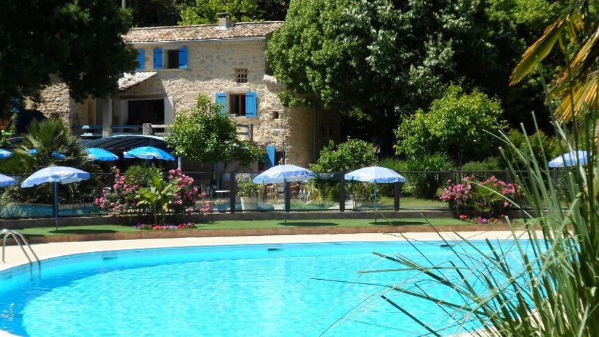 La Vallée Bleue is an immaculate small site run by a very friendly family, set in the beautiful Drôme Provençale famous for its vineyards, olive trees and lavender fields. There are just 58 mainly level stony, grassy pitches with 52 for touring. All have electricity connections (6A), water and drainage,. The site is carefully landscaped with a very wide variety of fruit trees and flowering shrubs providing varying amounts of shade to the spacious pitches. This site should appeal to those seeking a peaceful and relaxing holiday, happy to organise their own entertainment. This site is vey popular and advanced booking is advised.