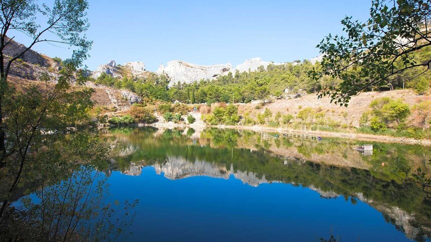 Around the site are many marked footpaths and cycle tracks just waiting to be explored. At the foot of the cliffs is an attractive lake. There are several medieval villages with their châteaux and fortified towers. Cavaillon, famous for its melons and colourful Provençal market is only 3 km. to the south. The famous historical cities of Avignon and Arles are within easy driving distance.