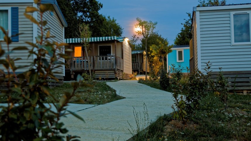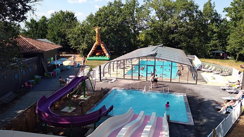 Sanitary block with hot showers and accessible facilities. Laundry. Motorhome services. Bar. Restaurant. Takeaway. Shop. Aerial adventure course. Swimming pool. Paddling pool. Pedalo hire. Fishing. Play area. TV room. Minigolf. Motorhome services. Entertainment and activity programme. Mobile homes to rent.