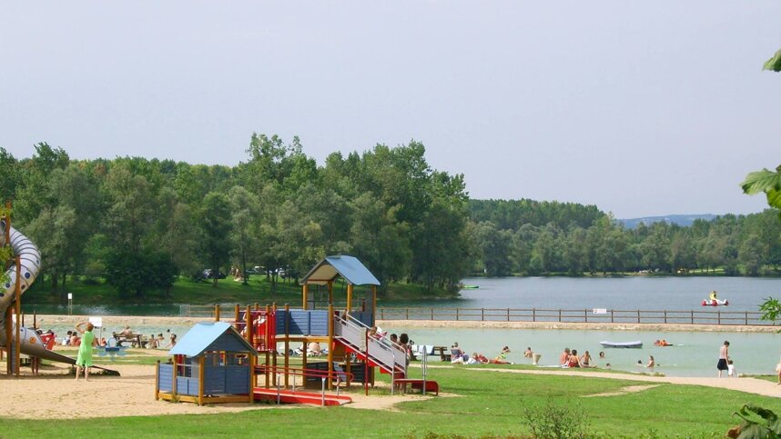This attractive, family-oriented site forms part of a landscaped recreation park surrounding a tree-lined lake. The 117 generous pitches, with a modern sanitary block in the centre, are level, grassed and enclosed by hedges. All have electricity (10A) and drainage. An area has been set aside for three teepees and a further area for chalets. The whole site has been well thought out. A small dam divides the lake into two areas, one for swimming with a beach, the other more prominent section for fishing, kayaks and pedaloes. Children will love the adventure playground in front of the beach area. There is some train noise from the nearby TVR, but only during daytime and only a moderate rumble.