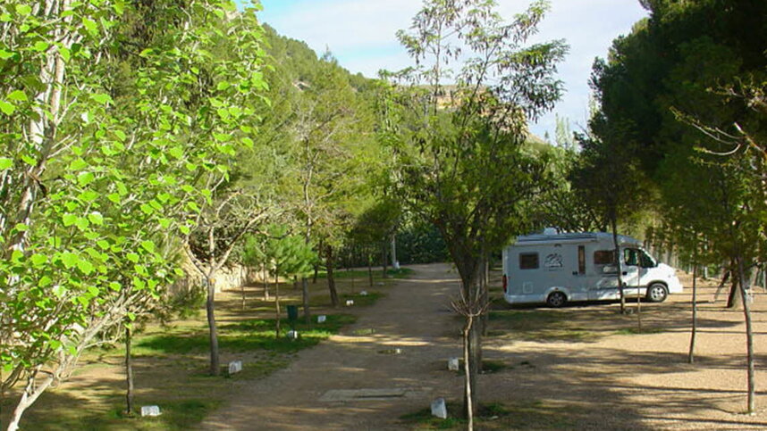 The 100 touring pitches are on terraces, including a large tent area are set on a steep hillside. Only the lower rows are suitable for large units. These pitches are numbered and marked by trees and have 6A electricity. Most of the site is occupied by wooden cabins, mobile homes and apartments. The area is very popular with Spanish visitors at weekends and public holidays, when the site can be jam-packed with sightseers from the Spanish cities of Barcelona, Valencia, Madrid and Zaragoza.