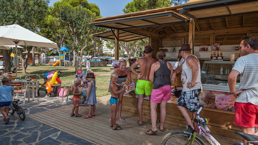 Five superb toilet blocks (1 new from 2019), placed to avoid long walks, have solar heated water, and include accessible facilities. Laundry room. Bar, restaurant and takeaway. Comprehensive supermarket. Swimming pools (15/5-20/10). Horse riding and ponies. Football. Tennis (free in low seasons). ATM. Minigolf. Windsurfing and sailing schools (July/Aug). Fishing. Miniclub. Play areas. Bicycle hire. Riding. Entertainment programme and competitions. Doctor visits. Satellite TV. Internet access. WiFi over site (charged).